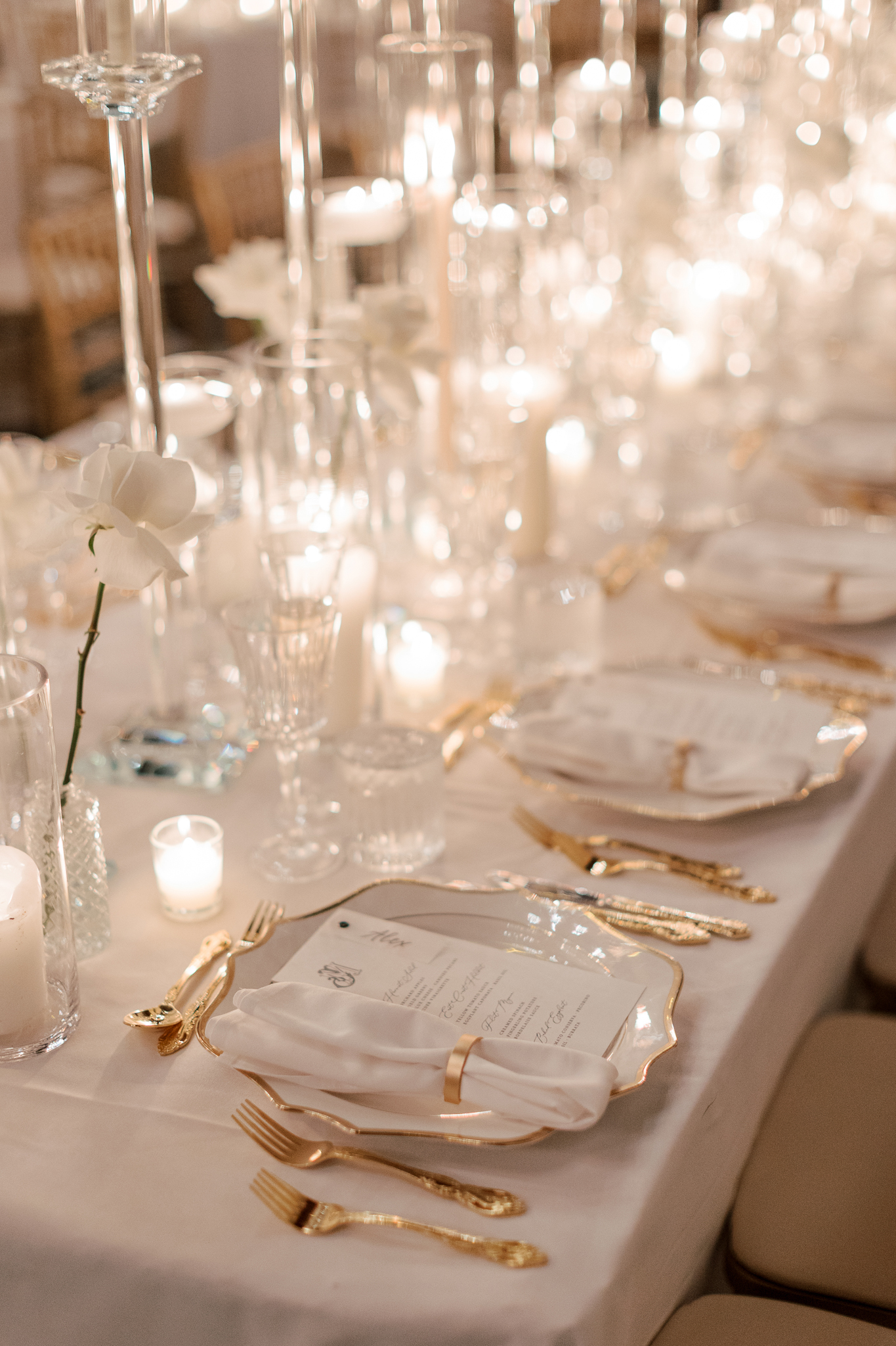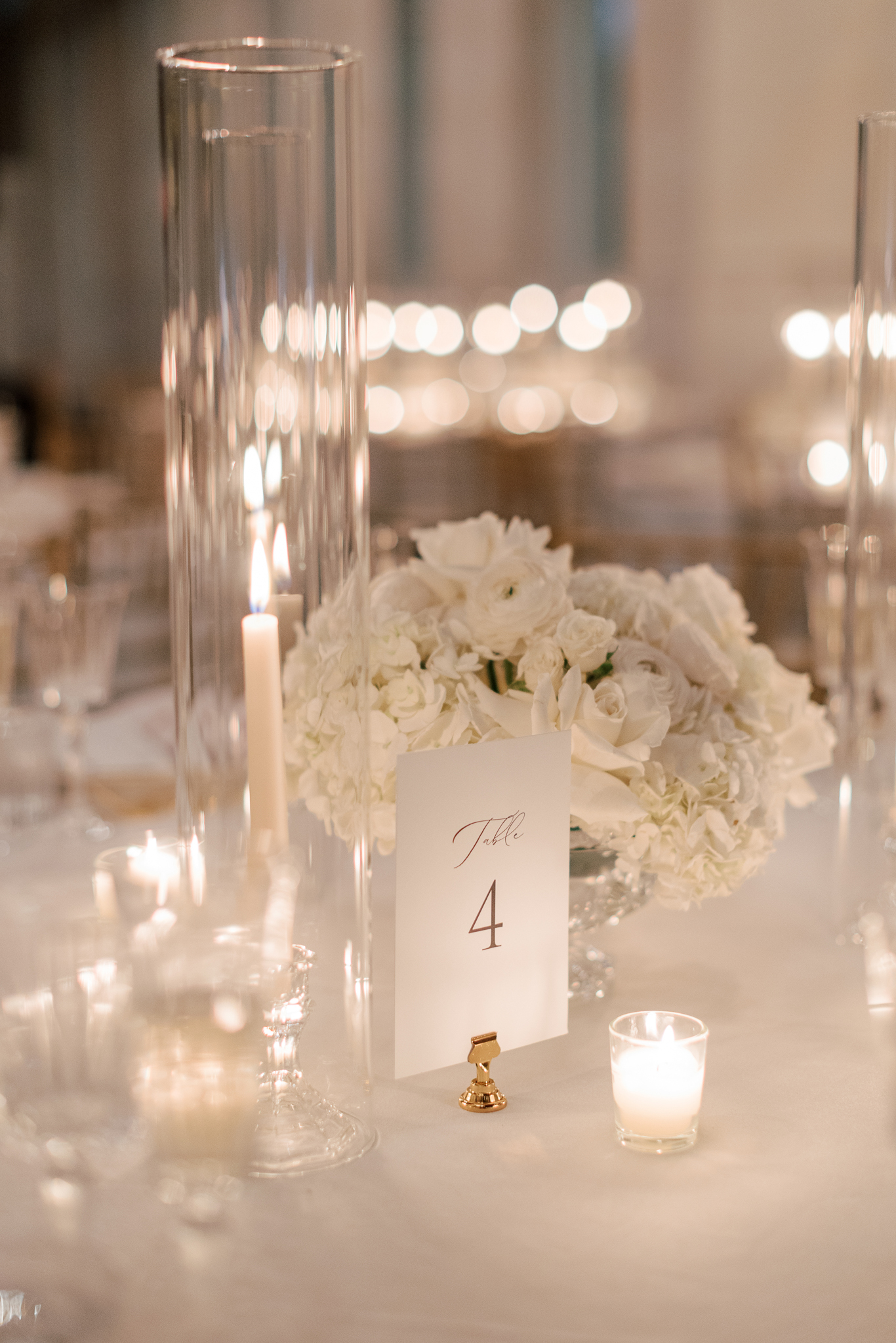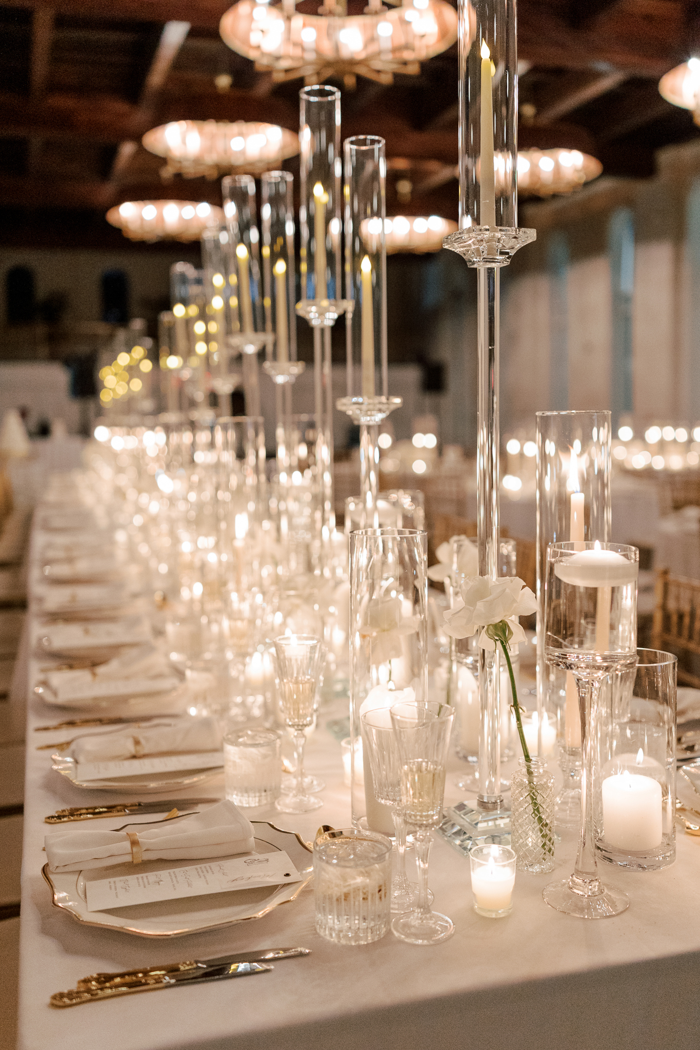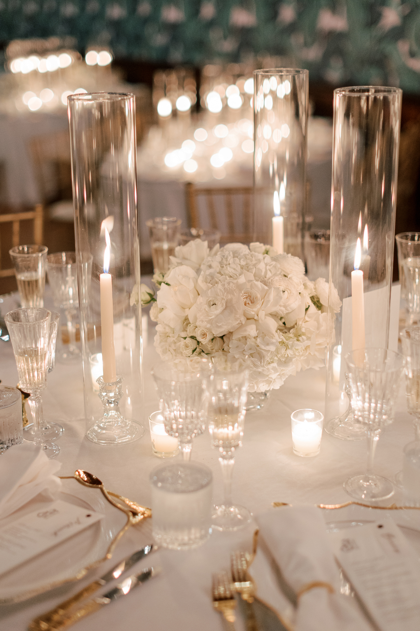 Planned and designed by @arielleferaevents, the wedding design captured defined elegance and grace. For example, the vision was clear — to create a day that felt both regally elegant and deeply romantic. From delicate white florals to hundreds of flickering candles, every element was chosen to evoke a feeling of timeless sophistication. Additionally, the thoughtful placement of each décor element created cohesion throughout the celebration. As a result, the scene balanced intimacy and luxury, creating a breathtaking tableau worthy of a black-tie celebration. Furthermore, the layered textures and soft color palette contributed to an atmosphere that felt both inviting and refined.