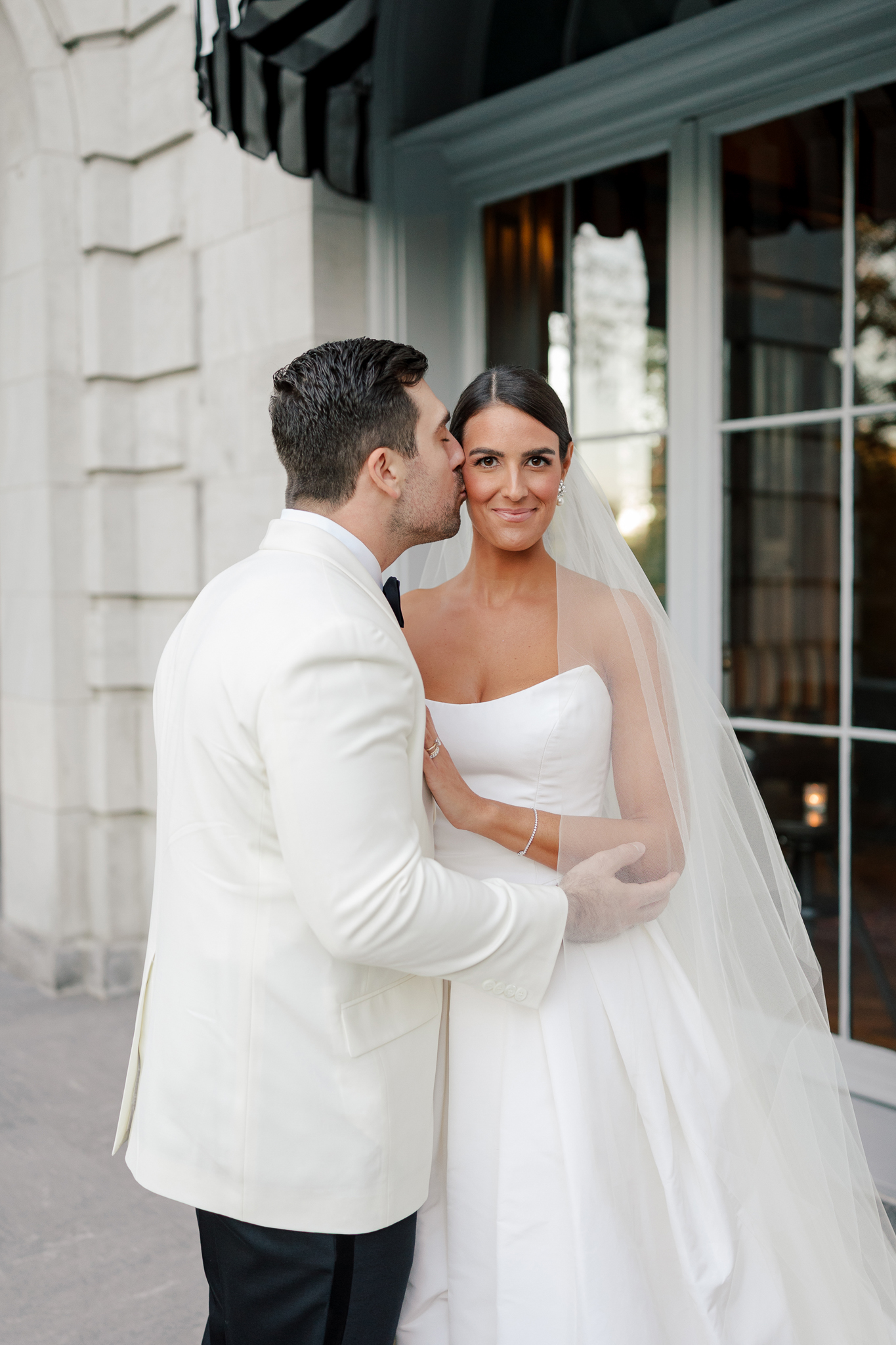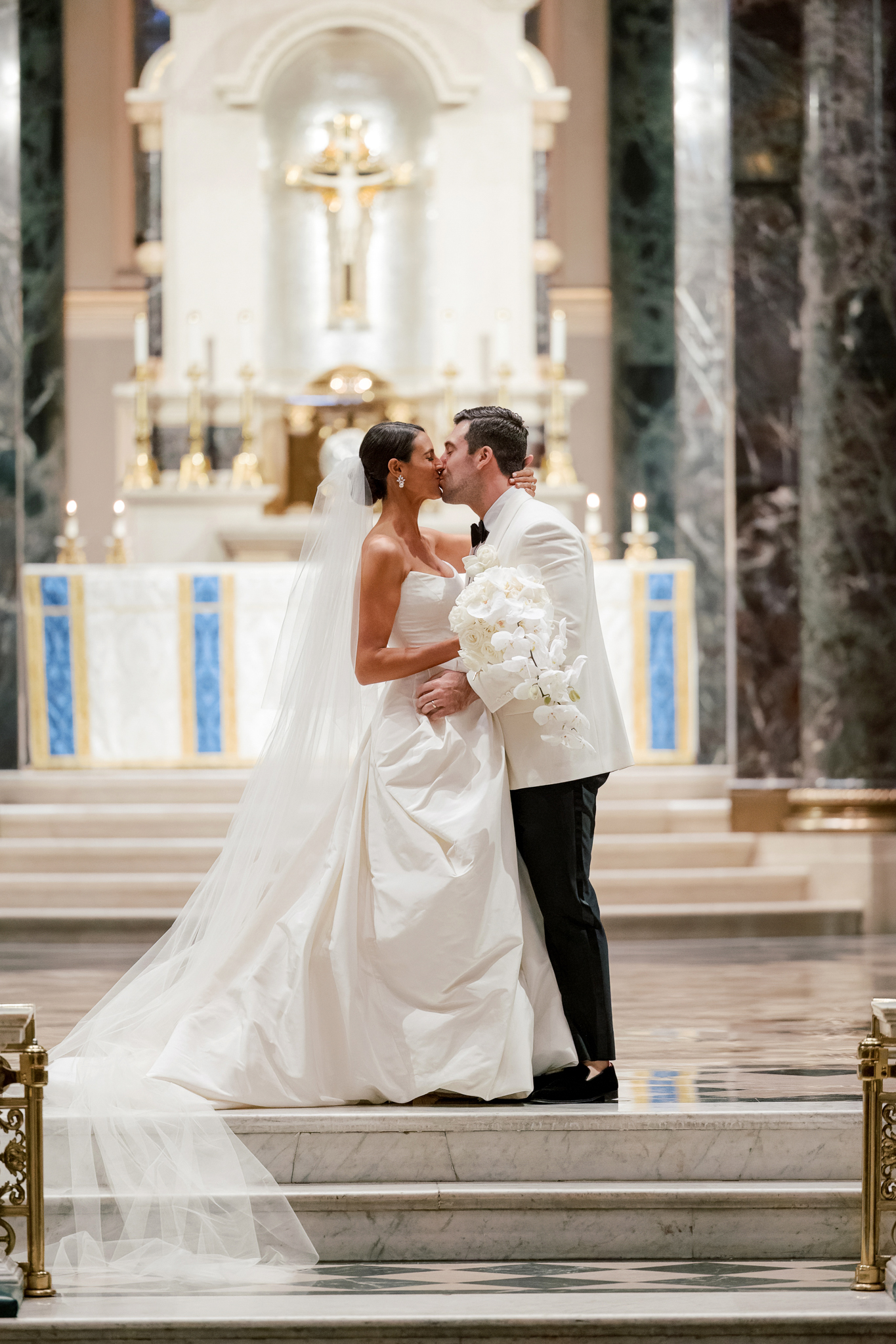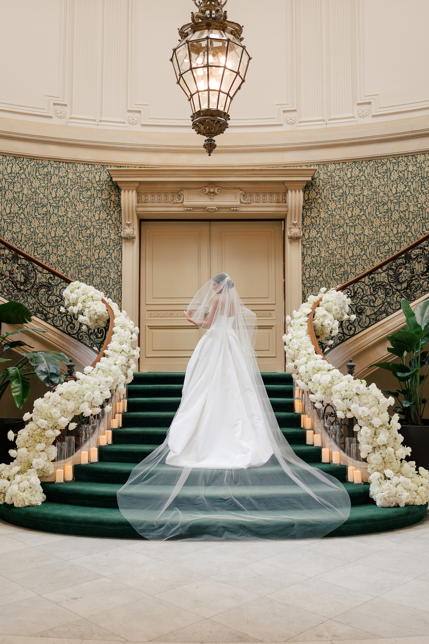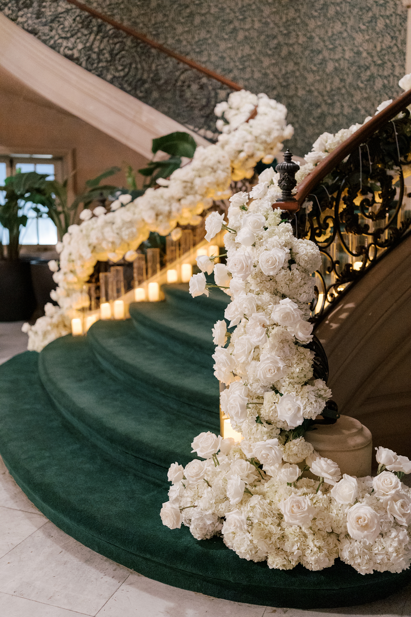 Planned and designed by @arielleferaevents, the wedding design captured defined elegance and grace. For example, the vision was clear — to create a day that felt both regally elegant and deeply romantic. From delicate white florals to hundreds of flickering candles, every element was chosen to evoke a feeling of timeless sophistication. Additionally, the thoughtful placement of each décor element created cohesion throughout the celebration. As a result, the scene balanced intimacy and luxury, creating a breathtaking tableau worthy of a black-tie celebration. Furthermore, the layered textures and soft color palette contributed to an atmosphere that felt both inviting and refined.