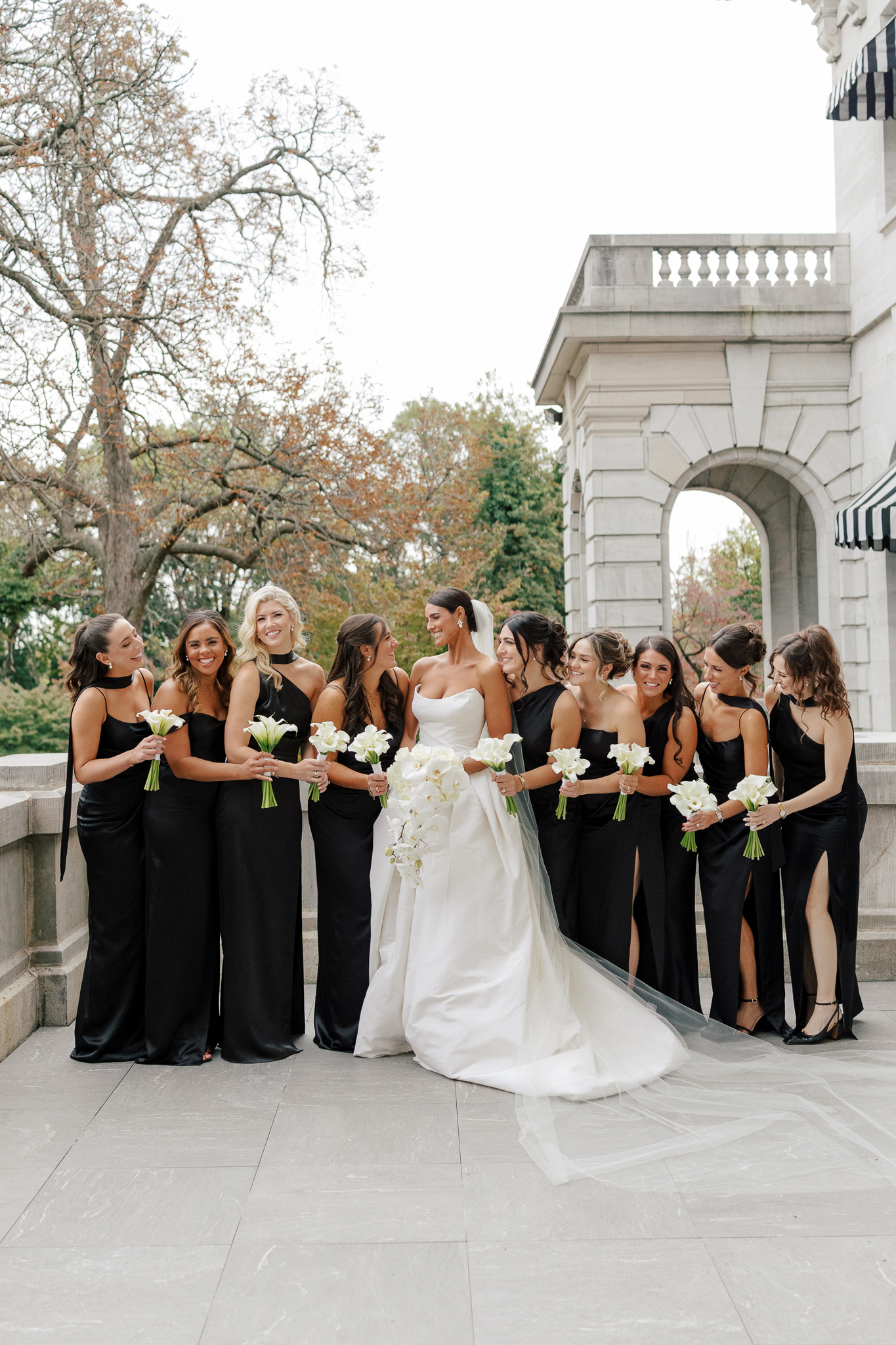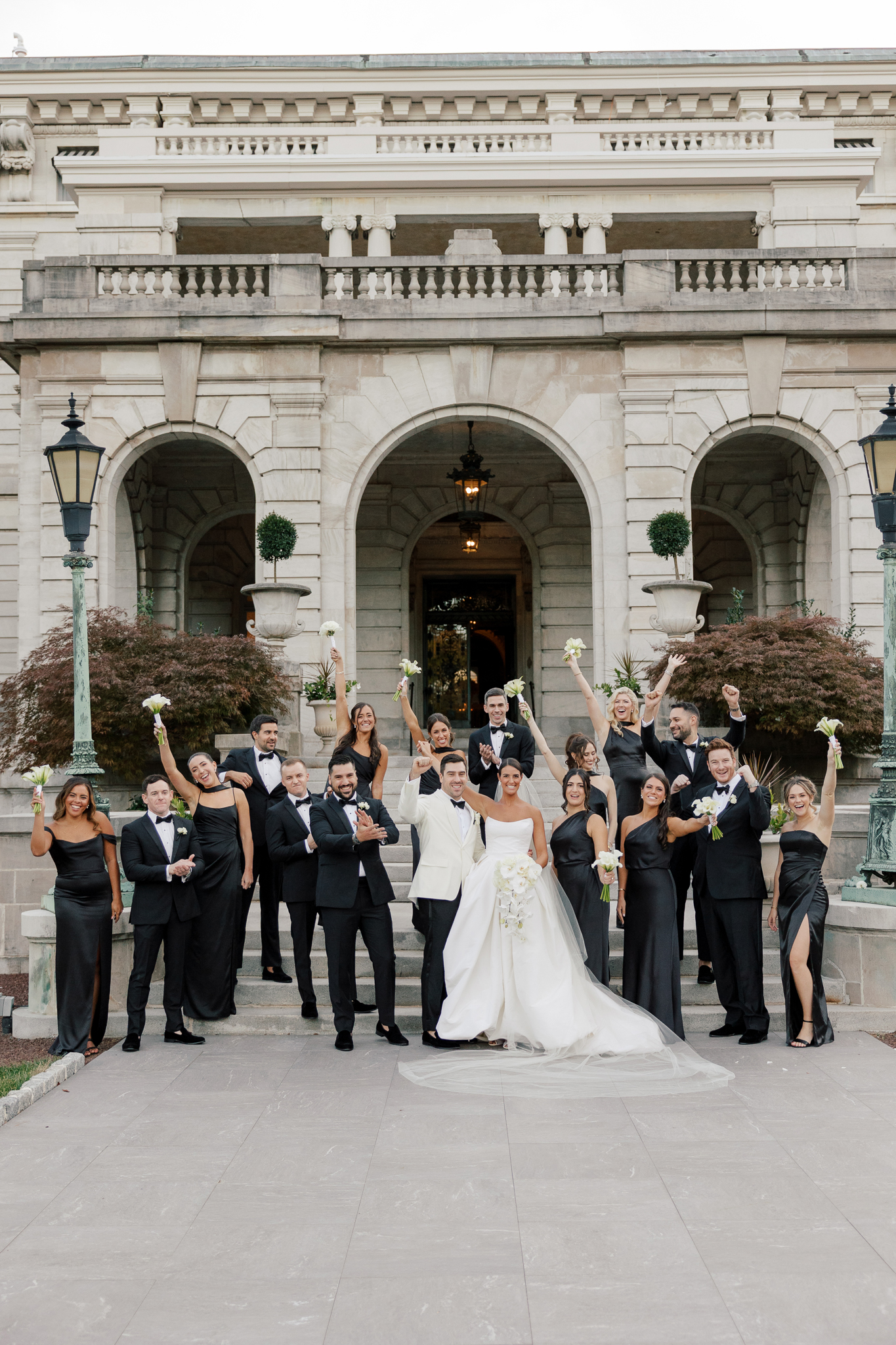 The bride’s gown by @oscardelarenta was the definition of classic beauty. Additionally, its tailored silhouette and intricate details perfectly mirrored the elegance of Elkins Estate. Her bridesmaids, dressed in refined hues by @jennyyoonyc, complemented the timeless aesthetic. Meanwhile, hair styled by @lindz355 and @redsagesalonandspa and makeup by @cherylstuartcosmetics enhanced the overall look, offering a modern take on classic bridal beauty. Moreover, the small details, like delicate jewelry and soft veil draping, added layers of sophistication. Ultimately, every element came together to create a portrait of romance, style, and effortless elegance. In conclusion, we love this venue! Each visit feels like stepping into a storybook, and this wedding perfectly captured that magic.